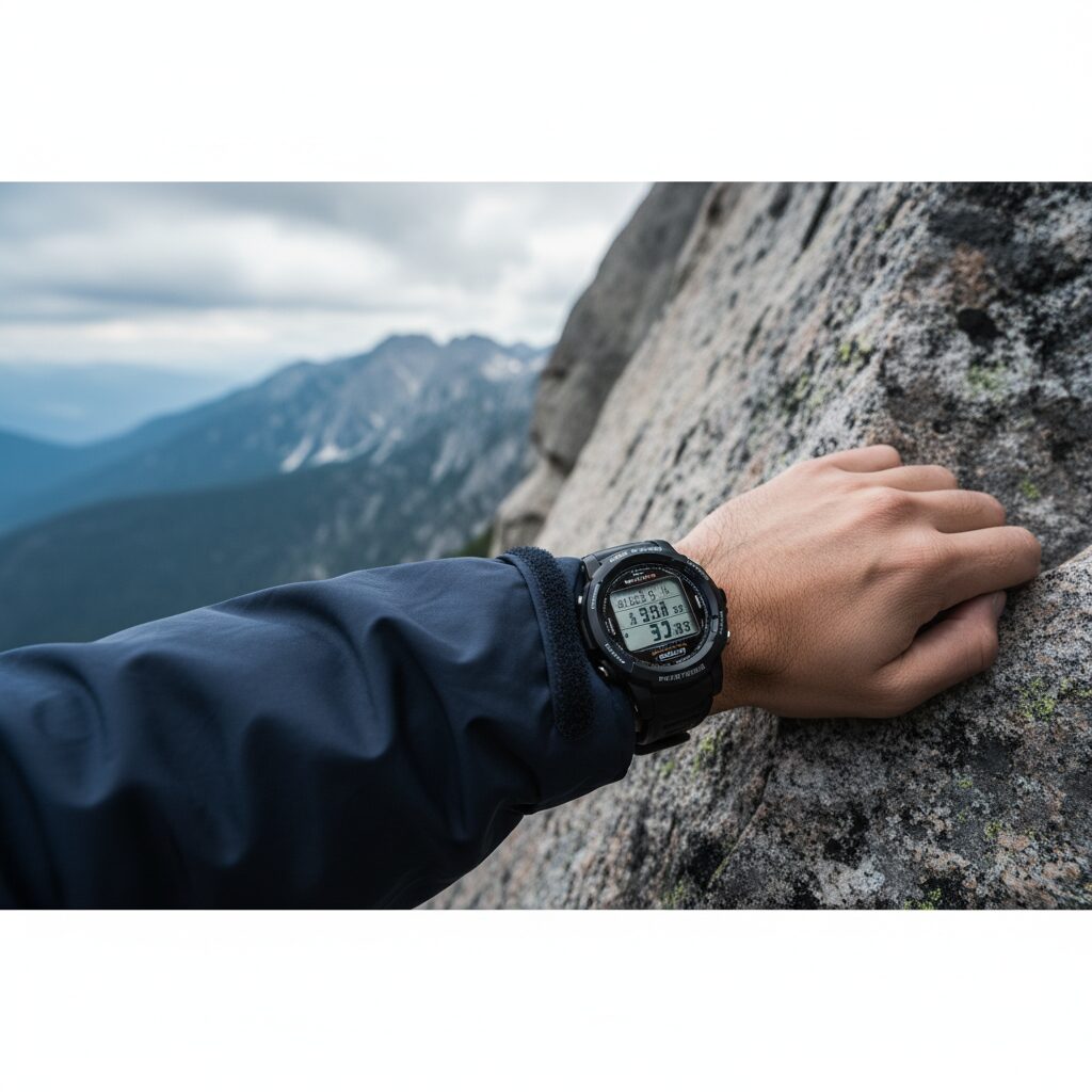 - アナログ針とデジタル窓を併せ持つ「PRW-61」は、手首へのフィット感を高める構造と洗練されたデザインで、登山だけでなく日常使いもしたい人に向いています。