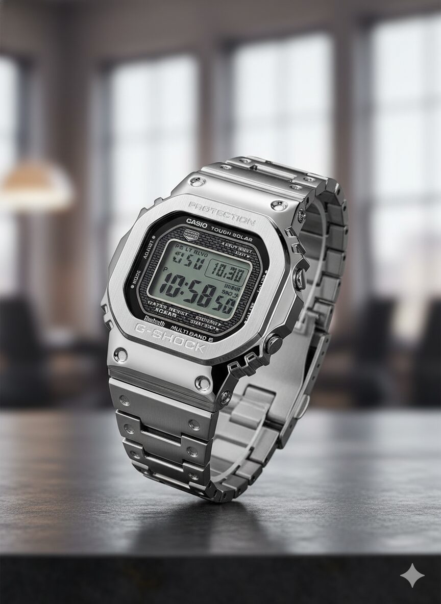 40代の男性が選ぶべきG-SHOCKは、樹脂製ではありません。フルメタル(GMW-B5000D-1JFなど)やG-STEELです。人生経験を積み、酸いも甘いも噛み分けた大人の男性が、あえてG-SHOCKの「メタルモデル」を選ぶ。