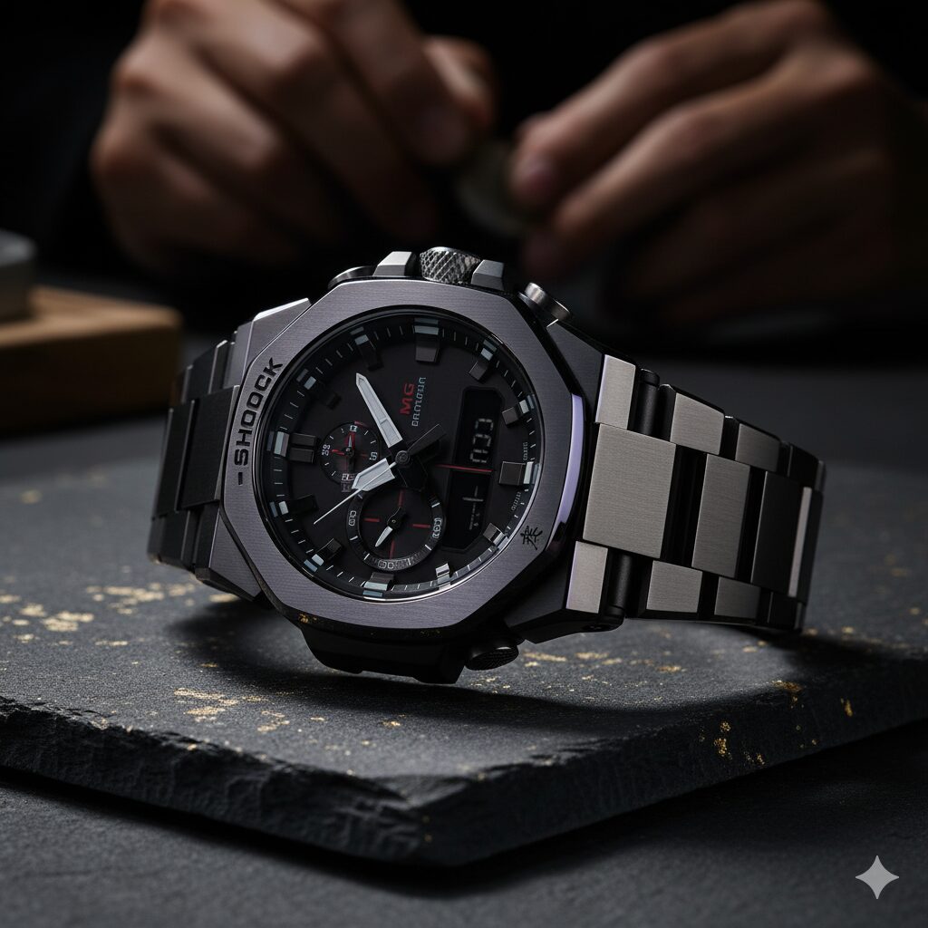 つまり、フルメタルシリーズ(GMW-B5000やGM-B2100)や、最高峰のMT-G、MR-Gなどですね。これらのモデルは、G-SHOCKでありながら高級時計としてのオーラを放っています。