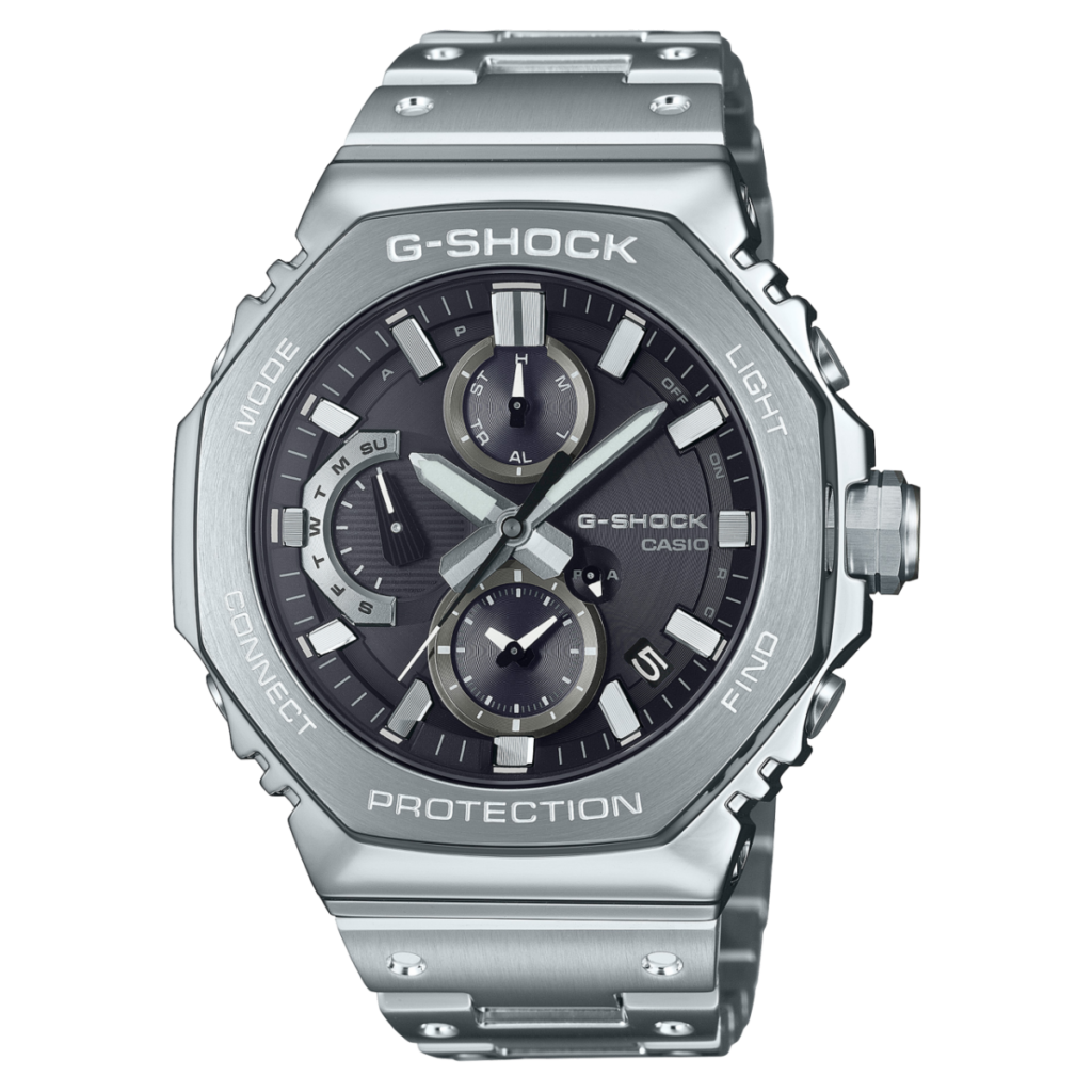 重厚感と高級感が、樹脂モデルとはケタ違いです。ステンレスの冷たい輝き、ズッシリとした重量感が、「これは安価な時計ではない」ことを雄弁に物語ります。G-SHOCKのアイコニックな「顔」はそのままに、素材が違うだけでここまで洗練されるのか、と誰もが驚かされます。