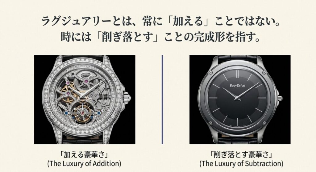 また、この時計は「足し算の豪華さ」ではなく、不要なものを極限まで削ぎ落とした「引き算の豪華さ(The Luxury of Subtraction)」を体現しています 。機能と美しさの本質だけを残すために技術の粋を集めることは、宝石を散りばめることよりも遥かに困難で、高貴な挑戦です 。