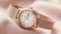 特にシチズン独自の「サクラピンク」は、大人の女性の肌を最も美しく見せるために開発された特別な色です。一般的なピンクゴールドのような赤みや強さがなく、非常に上品で落ち着いたイエローベースに近い色合いです。