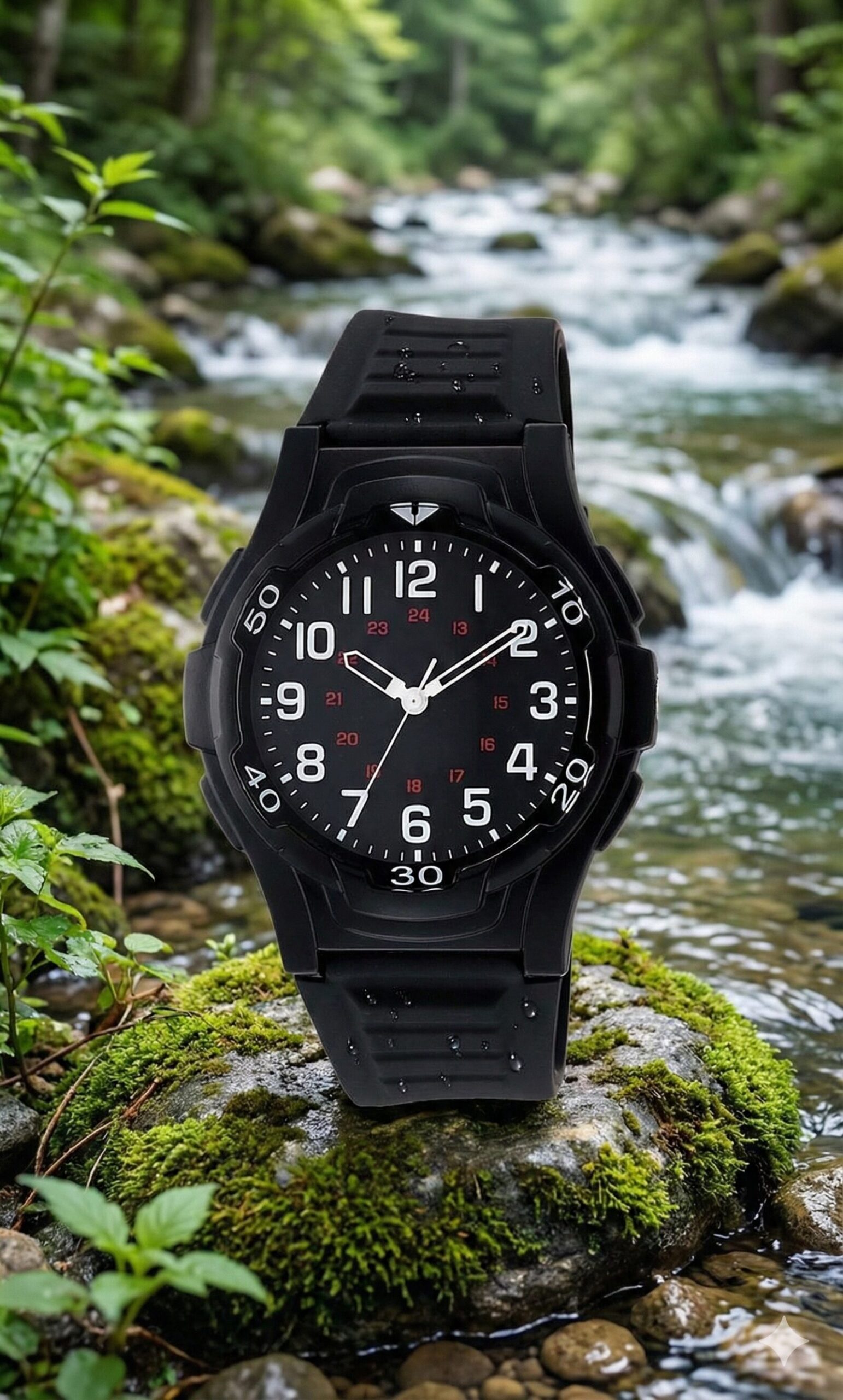 通常、低価格帯の時計は「3気圧防水(日常生活防水)」程度に留まることが多く、これは雨や汗には耐えられても、水仕事や水泳までを前提にするのは少し不安が残ります。